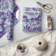 Elegant mint green baroque style floral damasks over a purple background.