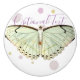 Soft mint green butterfly over dots of soft subdued multicolor dots pattern.