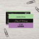 Make a lasting impression with this stylish business card design featuring mint green, black and lavender coloured stripes with pretty shimmery small gold decor.