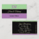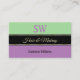 Mint Green Black Lavender Stripes with Monogram Business Card