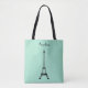 Mint Green Black Paris Eiffel Tower with Name Tote Bag