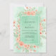 This botanical design features a refreshing mint green backdrop accented by delicate peach watercolor roses and lush sage leaves. The airy and romantic aesthetic highlights soft floral clusters and elegant greenery, creating a peaceful atmosphere. Ideal for a seasonal event, the palette combines warm pastel tones with cool, natural hues for a timeless look.