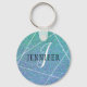 Mint Green Blue Faux Glitter Sparkles Monogram Key Ring