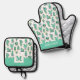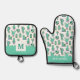 Mint Green Cactus & Succulent Plant Pattern Oven Mitt & Pot Holder Set