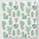 Mint Green Cactus & Succulent Plant Pattern Stone Coaster