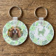 A soft mint green flower wreath frames your Cavalier King Charles Spaniel silhouette on this customizable keychain. Customize the silhouette side with your pet's name for a unique keepsake. A custom photo on the back makes it a heartfelt gift for any dog lover. Ideal for thoughtful gifts, daily carry, or pet-loving friends. Floral details create a charming and stylish look.