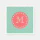 Mint Green Chevron Pattern | Coral Monogram Napkin