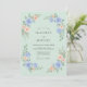 This design showcases a serene mint green backdrop decorated with dainty watercolor floral arrangements. Elegant periwinkle blue roses and soft peach blossoms are paired with lush green foliage to create a fresh, airy aesthetic. This palette and style are ideal for a seasonal nature-themed ceremony.