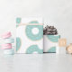 This cute wrapping paper features patterns of doughnuts with sprinkles and mint green icings on a white background. Change the background colour and personalise it for your needs. You can find matching products at my store.