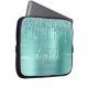 Personalised chic and girly laptop sleeve featuring mint green faux glitter drips and a mint green faux brushed metallic background. Monogram with your name in a stylish trendy white script with swashes.