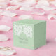 Simple and sophisticated Elegant Lace Wedding Favour Boxes featuring a white lace doily motif on a light mint green faux vintage paper background. These classic and stylish boxes are perfect for a rustic wedding. Easy to customise with your wedding details. Click "Customise It" to find more personalisation options.