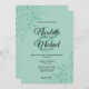 This mint green floral wedding invite is perfect for a spring or summer wedding. Featuring hand drawn cherry blossoms, buds and twigs, elegant calligraphy script highlights the bride's and groom's names and is balanced by clean and modern typography throughout the rest of the invitation.