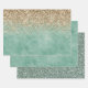 Mint Green Glam Gold Sparkle Glitter Wrapping Paper Sheet