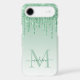 Mint Green Glitter Drips Sparkle Monogram Script Case-Mate iPhone Case
