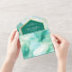 Mint Green Gold Abstract Fluid Ink QR Code Wedding All In One Invitation