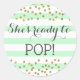 Baby shower or sprinkle round stickers "She's ready to Pop" featuring white and mint green stripes and faux confetti glitter. You can use these for bags of popcorns, small champagne bottles or other guest favours of your choice. Complete your theme with matching invitation, signs, decorations and more from our Mint Green and Gold Collection.