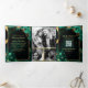 Mint Green Gold Floral Marble QR Code Wedding Tri-Fold Invitation