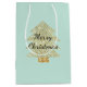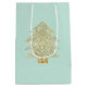 Mint Green Gold Glitter Christmas Trees Medium Gift Bag