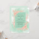 This design showcases a soft mint green watercolor wash that creates a peaceful backdrop. Delicate peach and blush pink roses are artfully arranged with wispy leaf stems for a romantic aesthetic. The botanical elements offer a fresh, seasonal feel that is both sophisticated and light. This palette is perfect for those seeking a graceful and airy atmosphere.