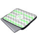 This modern laptop sleeve features a mint green and light grey chevron pattern with a custom monogram in matching green shade.