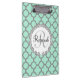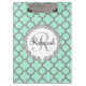 Mint Green Grey Quatrefoil Name Monogrammed Laurel Clipboard
