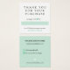 Thank you for your purchase package insert in a cute minimalist design with a mint green heart where the person who prepared the package can sign their name by hand for a personal touch. Add your contact information on the pastel green other side of the thank you for your order card. You can also write down a discount code for your customers' next purchase.