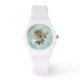 Mint Green Ivory Roses Sporty White Silicone Watch