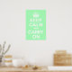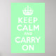 The classic " Keep Calm and Carry On" in a pale, light mint green.