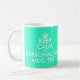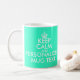 Mint green KeepCalm Mugs | Personalizable template. Cute gift idea for men and women. Customise background colours ie teal. Create your own funny KeepCalmandCarryOn parody. Simply edit the text of this template to make a unique design. Popular quotes: Keep calm and party on. Keep calm and love me. Keep calm and drink coffee. Personalised mugs are a great gift idea for friends and family at home or in the office.