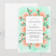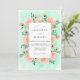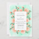 This design features a soft mint green watercolor background that beautifully complements the blooming peach roses. Delicate green foliage and buds are scattered throughout, creating a fresh and ethereal aesthetic. The watercolor textures provide a romantic and artistic feel, ideal for a refined spring or summer ceremony.