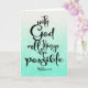 Mint Green Matthew 19:26 All Things are Possible Card to motive and inspire christians. Use them as outreach cards for your church.