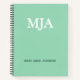 Mint Green Monogram 3 three letter Initials Modern Notebook
