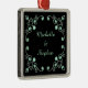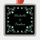 This is an exquisite personalized Christmas ornament in shiny mint green and black. A pretty four corner ornate frame looks as if tiny mint green jewels or diamonds are embedded. Your custom text is placed in the middle on a dramatic black background. A beautiful Holiday keepsake! *Please note - the image is printed and contains no actual jewels. Thanks to Scrap & Tubes Design for the artwork used.