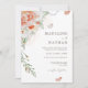 This mint green, peach and white floral wedding invitation features a beautiful wedding bouquet using peach and white flowers with greenery and white ribbons, on top of some rose-gold sparkles. The rose petal confetti adds an additional final ‘wedding day’ touch.