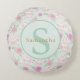 Mint Green Pink Tea Cups Personalised Monogram Round Cushion