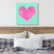 Mint green and pink faded vintage heart wrapped canvas art. Neon Pink and turquoise blue weathered heart symbol print. Rustic art design with love icon symbol. Distressed look grungy style. Modern wall decor for wedding, home, bedroom, shop, office etc. Romantic romance theme design. Available in different colours.