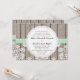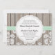 Rustic ribbon and lace wedding invitations with a printed weathered wooden fence, nail head, a mint green and jade hued ribbon, wood grain and antique damask lace look background is perfect for a vintage barnyard, farmhouse, farm or country themed wedding ceremony. Created and designed by Chrissy H. Studios, LLC. All Rights Reserved.