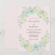 Delicate mint green foliage encircles soft, buttery yellow blossoms, creating a serene and romantic atmosphere. This watercolor design evokes a gentle, natural feel perfect for a spring or summer occasion. The airy composition suggests elegance and understated beauty.
