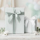 This beautiful wrapping paper features a gender neutral striped mint green and white pattern.