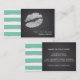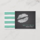 Mint Green Stripes Faux Silver Shine Lips Chic Business Card