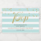 Cute She's Ready To Pop mini sparkling wine labels are the perfect favour for your gender neutral baby shower. They feature mint green and white stripes with the words PoP with faux gold confetti. You can customise the colour of the stripes to suite your baby shower decor. To see more visit VG Invites on Zazzle.