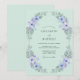This design features a soft mint green background adorned with a delicate arrangement of lavender anemones and periwinkle blossoms. Silver dollar eucalyptus leaves and airy foliage create a natural, ethereal aesthetic perfect for a spring or summer event. The watercolor textures and pastel palette evoke a sense of tranquil romance and botanical beauty.