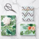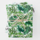 Modern wrapping paper sheet set with tropical leaves and geometric patterns.