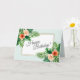 Modern birthday card design featuring watercolor tropical leaves and hibiscus flowers on a mint green background. The text inside can be customised.