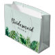 Mint Green Tropical Watercolor Leaves Bridesmaid Large Gift Bag