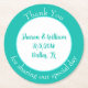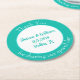 Mint green and white wedding favour paper coasters, with custom text going around the outer edge and in the middle. Personalise all the text fields for your wedding.