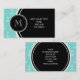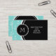 Mint Green White Anchors Pattern, Black Monogram Business Card
