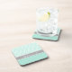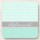 Mint Green White Chevron Zigzag Pattern Grey Name Coaster