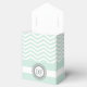 Mint green, white chevron zigzag pattern monogram wedding favour box featuring a chevron or zigzag pattern and your initials in a grey round frame with dots on a white stripe along the bottom part. This monogrammed trendy and cute girly favour box is perfect for other special occasions too such as bridal showers, birthday parties, baby showers etc.