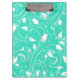 Mint Green, White Floral Swirls; Flowers Clipboard